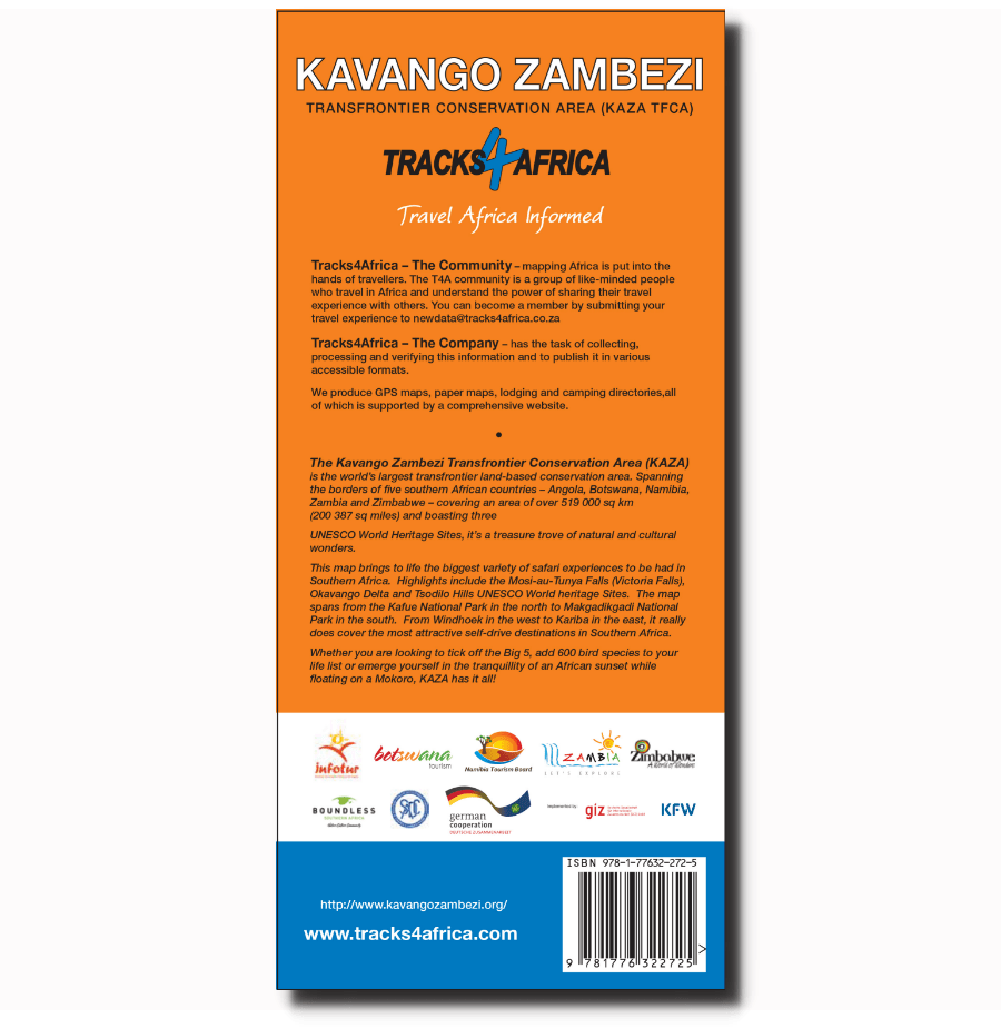 One map that does it all! If you plan to travel to a collection of the most popular overland destinations in Southern Africa, then you have to consider the Kavango Zambezi Transfrontier Conservation Area Map (KAZA) paper map 1st Edition. Notably, the KAZA paper map refers to the world’s largest transfrontier land-based conservation area.