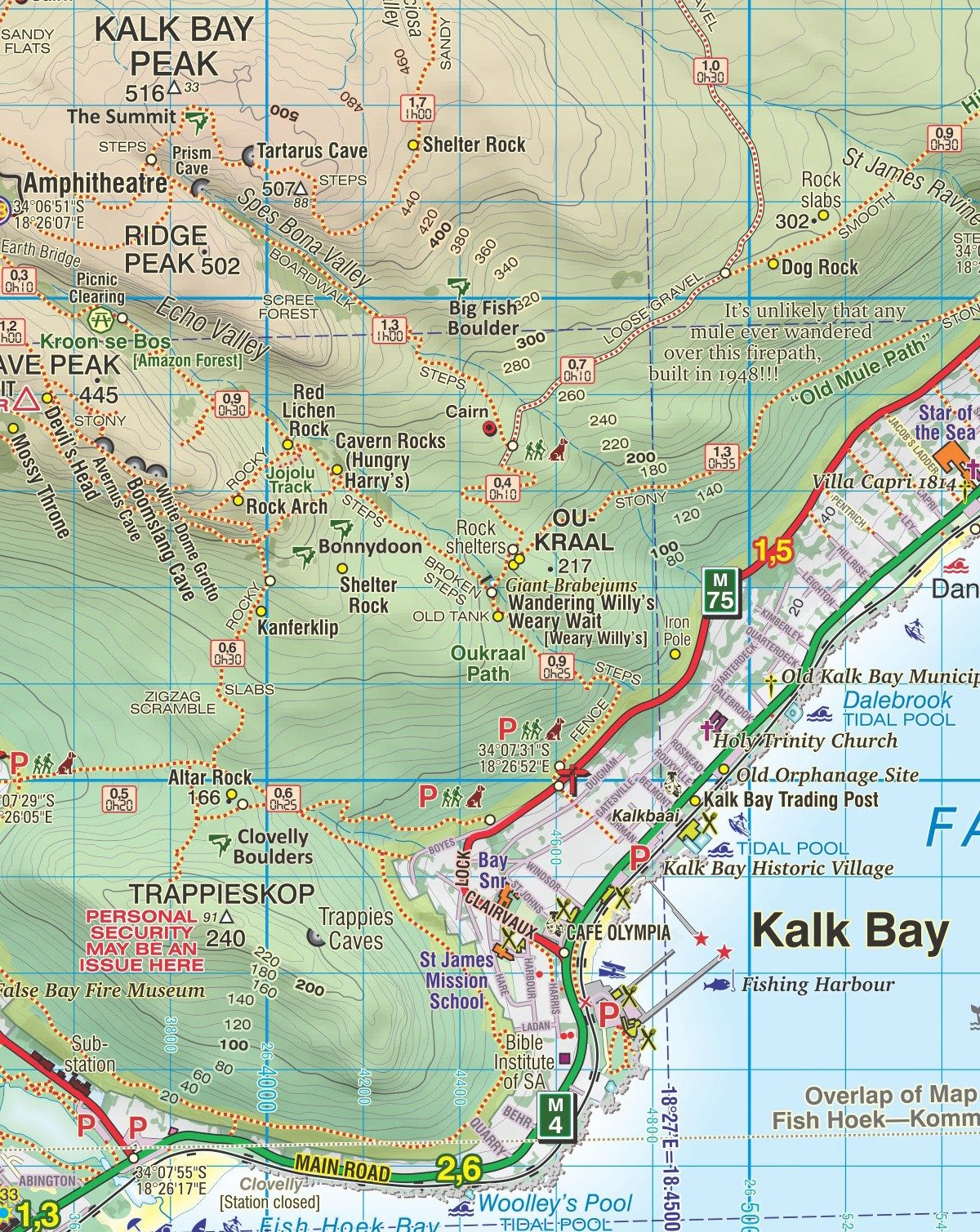 The Silvermine & Hout Bay Paper Map provides UTM grid lines at 200m intervals and latitude/longitude at 1-minute intervals. It also includes GPS waypoints for key road junctions and other important locations. This ensures accuracy and confidence on every journey.
