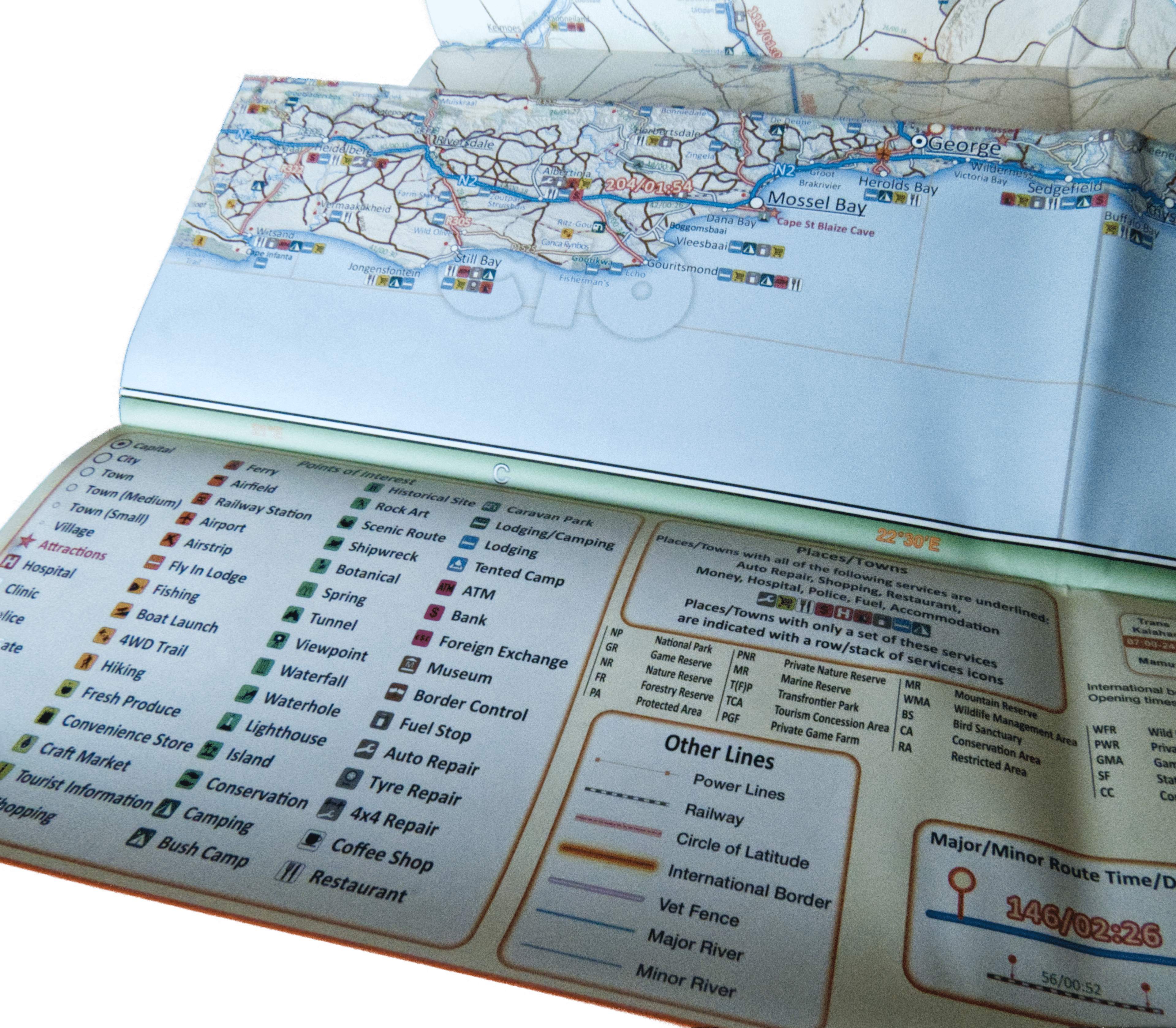 This map is huge. The physical size provides a real ‘big picture’ for trip planning. It is real dining room table family engaging stuff. I used it successfully for planning an off-road motorbike trip from Cape Town to Jhb. An excellent resource!!!